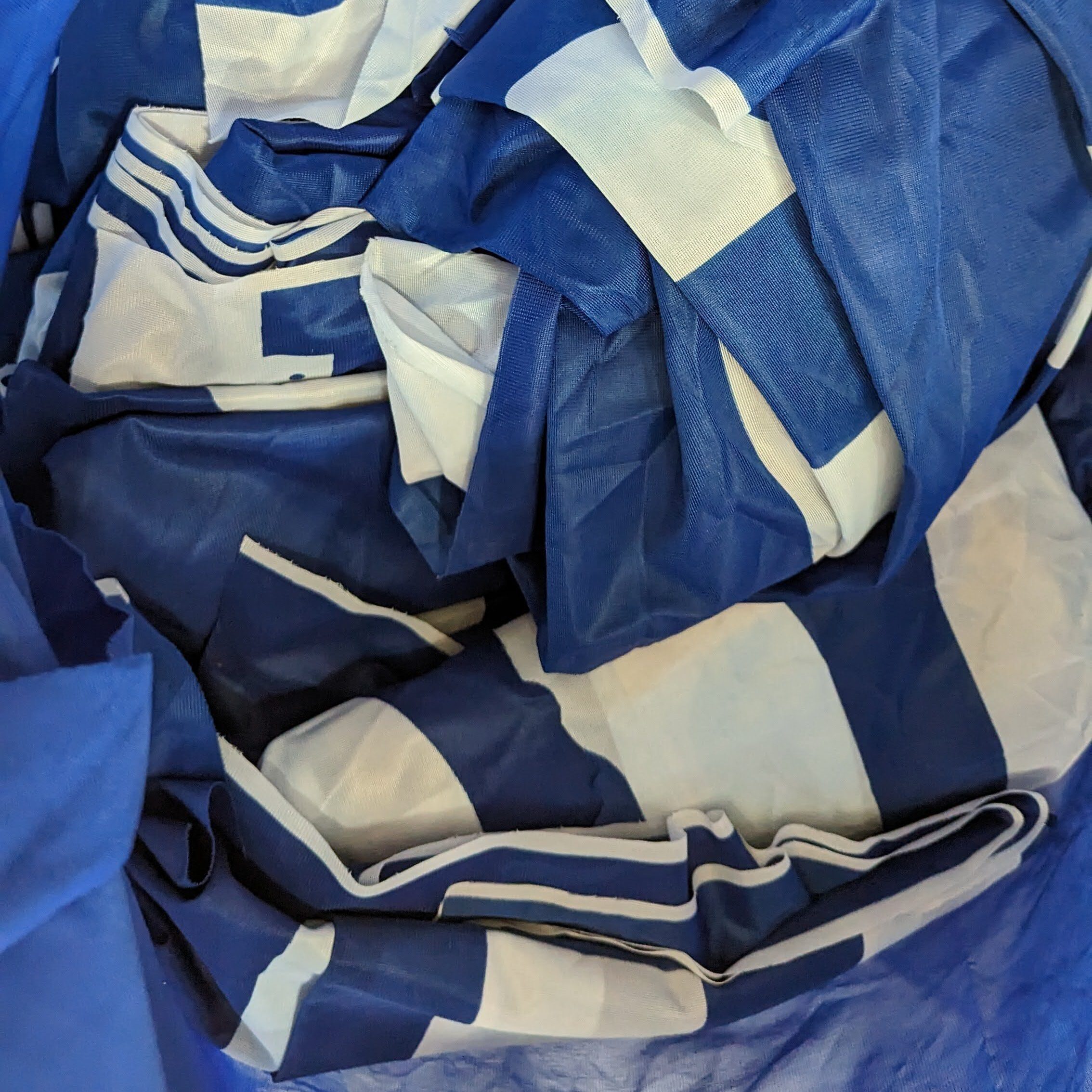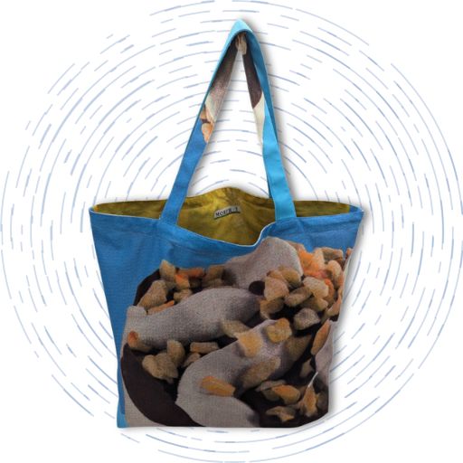 Leftover polyester from a banner manufacturer — heavy-duty, vibrantly printed, and destined for landfill. We use it for our Market Bags, Yoga Mat Bags, Large Totes, and more.